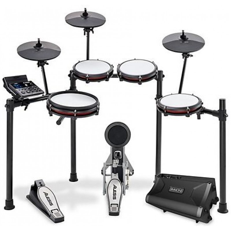 The Alesis Nitro Max 8-piece electronic drum kit opens up exciting possibilities for drummers of all levels with its premium mesh heads, massive sound library and Bluetooth streaming. Jam out to your favorite songs or practice quietly at home with the ultraresponsive mesh drum heads. Shape your sound with 32 classic and modern drum kits and 440 diverse sounds from the BFD library. Easily connect to phones, tablets or laptops via Bluetooth to jam along to music. The included Simmons DA2108 drum amp pumps 100W through quality speaker components for clear, balanced acoustic drum reproduction. Everything fits into a compact footprint for quick setup anywhere. Take your playing to the next level with the Alesis Nitro Max.