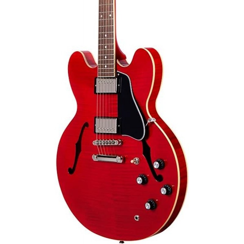 The Epiphone ES-335 Figured with Gibson USA Pickups semi-hollow electric guitar blends classic looks with modern reliability and a standout voice. Inspired by the legendary ES-335, this semi-hollow body instrument features a flame maple veneer top and back, matched to a solid maple center block for added sustain and feedback resistance. Players immediately notice the smooth action and comfortable rounded C neck profile, making it a pleasure to play up and down the fretboard. The included Gibson USA T-Type humbuckers give the ES-335 Figured a distinctive, articulate tone and a unique sonic edge.