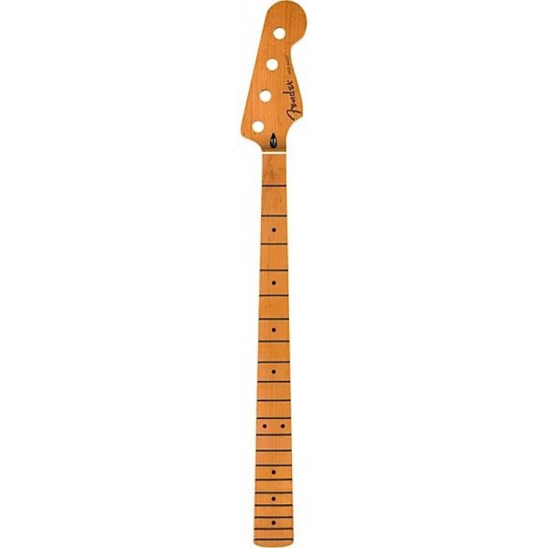 The satin roasted maple Jazz Bass replacement neck brings new life to your Fender or Squier by Fender bass guitar. Crafted in Mexico, its roasted maple construction is not only gorgeous with a dark, sleek look, but also resistant to humidity shifts for consistent tone and feel. The comfortable "Flat Oval" neck profile paired with the smooth 12" radius maple fingerboard and 20 jumbo frets creates an incredibly playable feel for speed and comfort. Upgraded features like the satin urethane finish and rolled fingerboard edges lend a smooth, broken-in feel right out of the box.