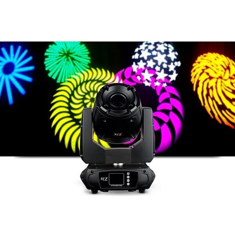 The Attco Spot 200 from JMAZ Lighting is a compact size, light weight, full function and high-brightness moving head with built-in Wi-MAZ wireless DMX technology, using a 200W LED optical 16-degree angle. Features include fast pan/tilt scanning, low noise and high accuracy. It has rotating gobo wheel, a static gobo wheel, a color wheel, a 3-facet prism, electronic focusing and 0-100% linear LED dimming with strobe effect at different speeds.Features