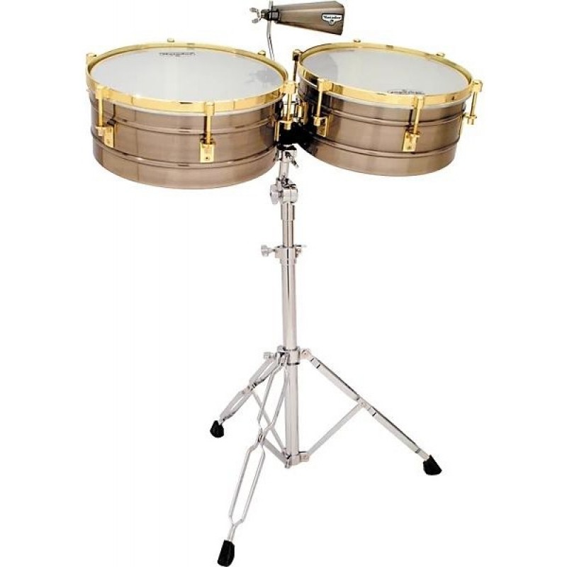 LP Matador Timbales from Latin Percussion offer traditional sound and excellent value. The 14" and 15" diameter shells are 6-1/2" deep and can be tuned traditionally with a tuning wrench. They can be mounted on the included heavy duty, chrome tilting stand which is fully height adjustable. A LP Matador Cowbell and cowbell holder, a tuning wrench, and a pair of timbale sticks are also included. They are finished in a beautiful brushed-nickel with gold tone hardware.Features