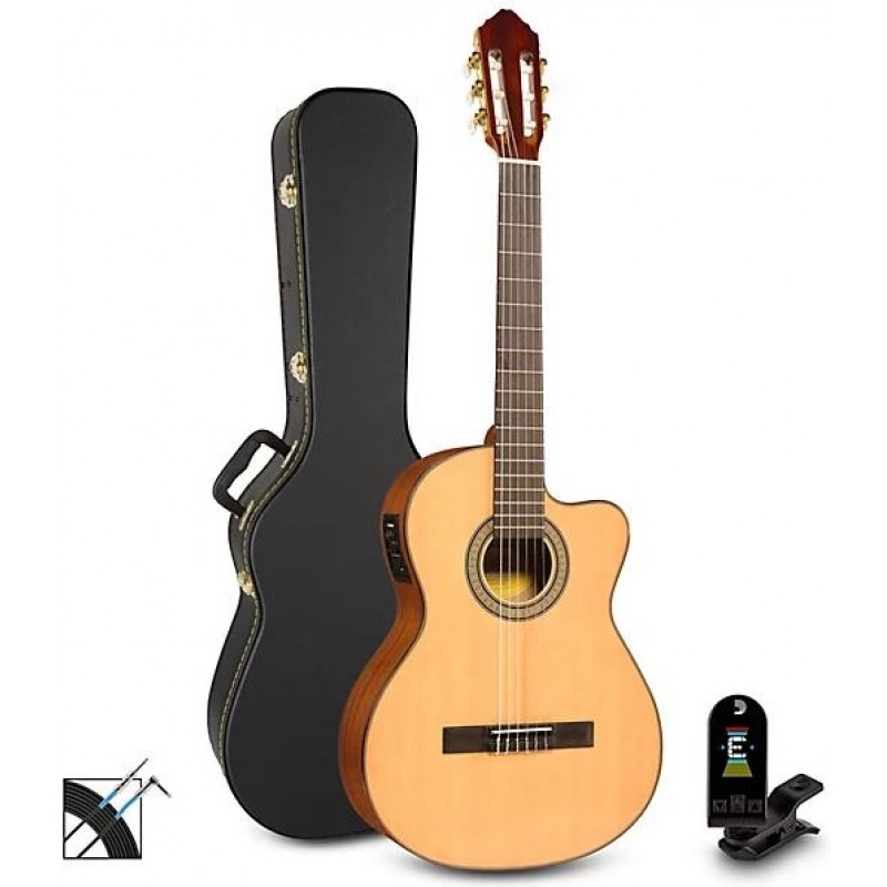 Lucero LC150SCE Classical Acoustic Electric Guitar Pack