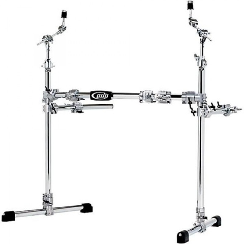 The chrome-plated PDP drum and cymbal rack boasts heavy-duty steel tubing and numerous reinforced clamps and accessories. Engineered to be strong and modular, with handy features like a nameplate with built-in level, soft-grip rubber feet with integrated spikes, and TechLock locking screws. PDP V-clamps work with various-sized tubing, so you can pair them up with Pacific hardware, or just about any other manufacturer's tom arms, cymbal arms or accessories for heavy-duty flexibility.Features