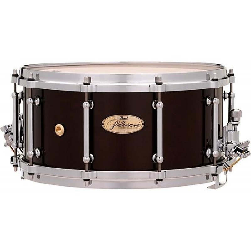 The Philharmonic Maple Snare Drum from Pearl features a solid maple shell, richly finished in a hand-rubbed Walnut Bordeaux stain to bring out the beautiful grain. These painstakingly manufactured drums are outfitted with chrome-plated Classic Tube Lugs and die-cast hoops. Snare head replacement and maintenance is easy thanks to a Quick Release Snare mounting system that maintains your personal snare adjustment settings on each of the three assemblies.Features