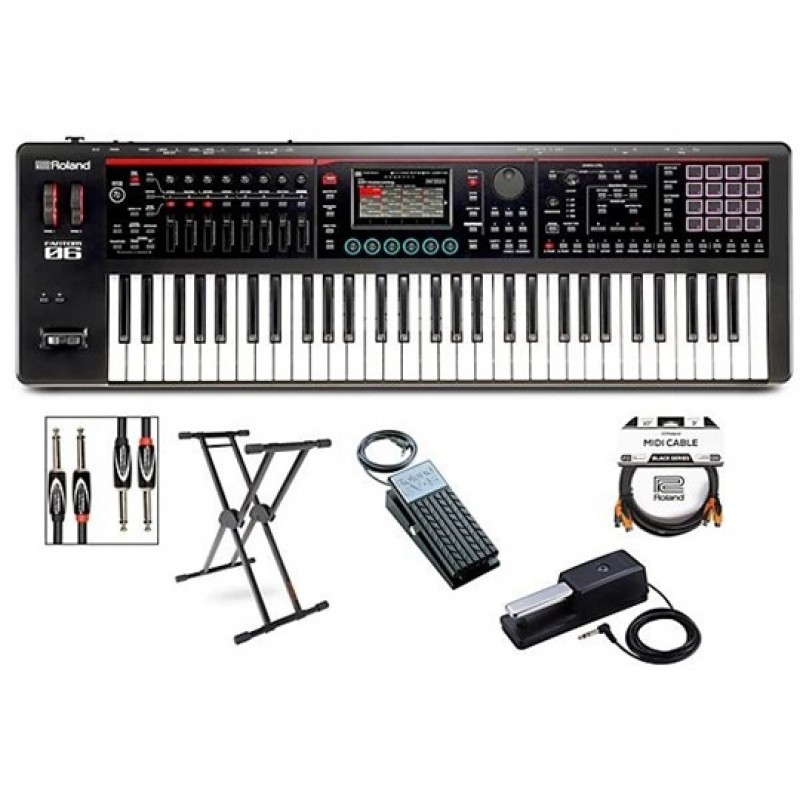 This Roland FANTOM-06 synthesizer bundle includes a KS-20X, DP-10, EV-5 and Black Series audio and MIDI cables. It brings your creative world together, combining the sonic power and fluid workflow of the top-of-the-line FANTOM series in a streamlined instrument that goes everywhere your inspiration takes you. Play and produce with Roland’s best sounds and unleash your musical vision with a color touchscreen, hands-on controls and deep computer integration found on the flagship models. Enjoy thousands of professional sounds from Roland's immense, trendsetting library and navigate with a responsive 61-note keyboard with loads of high-res controls.Designed for non-stop music creation, FANTOM-06 lets you shape sounds and make music without interrupting the flow. Combine next-generation synthesis, SuperNATURAL technology, responsive pianos, organic organ, and deep, intuitive sampling when you get started. Download 15 Wave Expansions and 10 Sound Packs at no charge from Roland Cloud with your FANTOM-06 purchase.