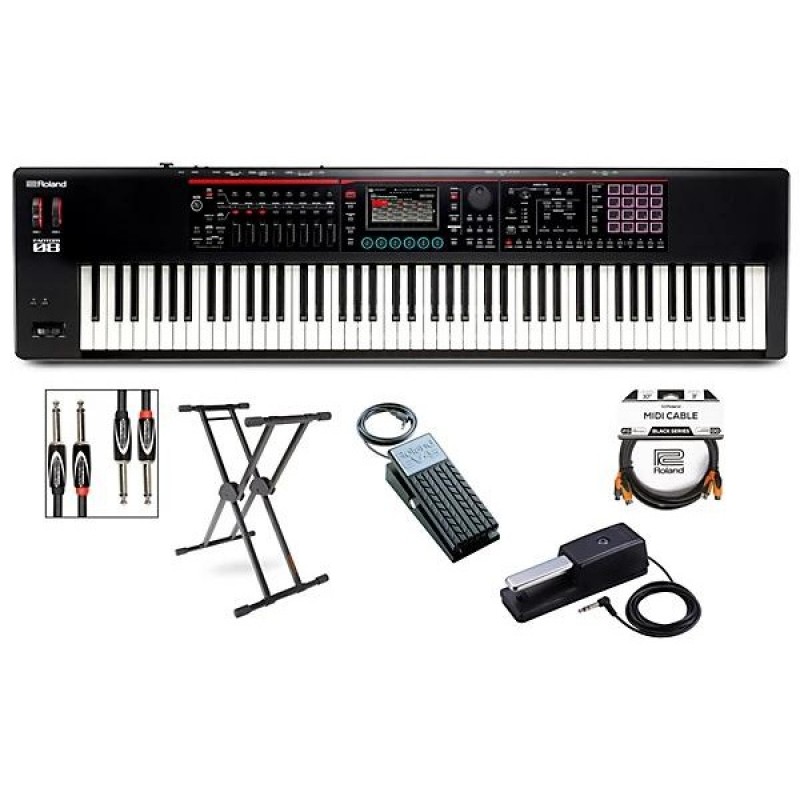 Roland FANTOM 08 Synth Bundle With Stand Pedals And Cables