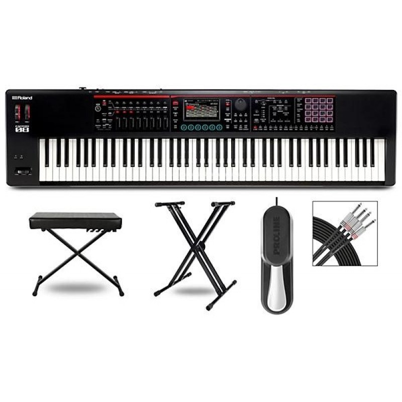 This FANTOM-08 synthesizer keyboard bundle includes an X-stand, sustain pedal, Musician's Gear KS-505-MG padded, faux leather bench and Livewire audio cables. It's equipped with Roland’s most innovative technologies, placing a huge selection of electronic and acoustic sounds at your command. It brings your creative world together, combining the sonic power and fluid workflow of the top-of-the-line FANTOM series in a streamlined instrument that goes everywhere your inspiration takes you. Play and produce with Roland’s best sounds and unleash your musical vision with the same color touchscreen, hands-on controls and deep computer integration found on the flagship models. Unifying your creative vision starts here.Features