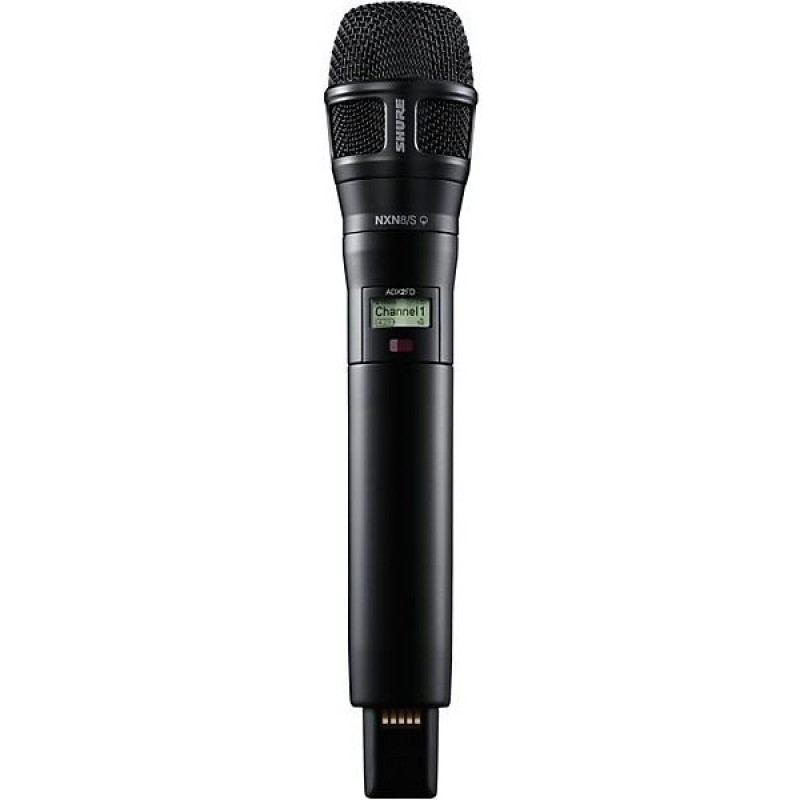The Shure ADXFD2/N8S handheld wireless transmitter is engineered for elite audio performance, designed for compatibility with Axient Digital Wireless Systems and featuring the Nexadyne 8/S cardioid dynamic microphone capsule with Revonic Transducer Technology. Built to excel in demanding environments, it offers a wide tuning range of up to 184MHz, dual RF carrier transmission, and an optional 50mW High Power mode to ensure exceptional clarity and range. This lightweight yet durable transmitter, available in a moisture-resistant metal case in black or nickel, supports up to 6.5 hours of runtime on two RF carriers (or up to nine hours on a single carrier) with the SB920A rechargeable battery. ShowLink remote control provides real-time adjustments from the booth and automatic interference avoidance for reliable, uninterrupted performance. The ADXFD2/N8S also includes two transmission modes—Standard for optimal coverage and High Density for maximizing channel count and robust signal strength—all with encryption-enabled security.
