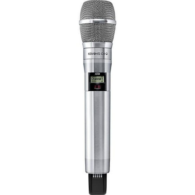 This Shure Axient Digital ADX2/K9HSN wireless handheld microphone transmitter with KSM9HS capsule is a sleek metal handheld transmitter with ShowLink remote control and other pro features.Compatible with Axient Digital Wireless Systems, the ADX2/K9HSN, like all ADX transmitters, sets the stage for exceptional performance, with wide tuning up to 184MHz, interference protection, advanced rechargeability, streamlined design and ShowLink remote control for real-time parameter adjustments right from the booth. The ADX2/K9HSN features the KSM9HS cartridge and two SB920 rechargeable batteries. It comes in a nickel finish.